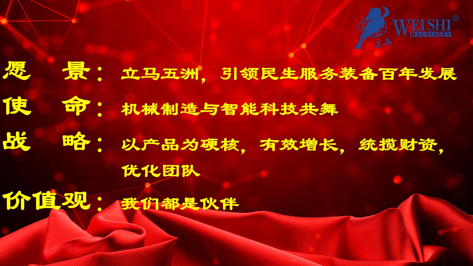 威士机械一直遵循“技术创新,深耕服务”的宗旨,扎根行业深耕细作,紧握市场发展脉搏,坚持技术创新引领,打造新型智慧系统。注重人文关怀和人体工程学,持续提升生产效率、降低能耗,集全球先进技术为用户提供环保、高效、智能的设备和本土化的优质服务,提升客户价值,与客户共同成长。