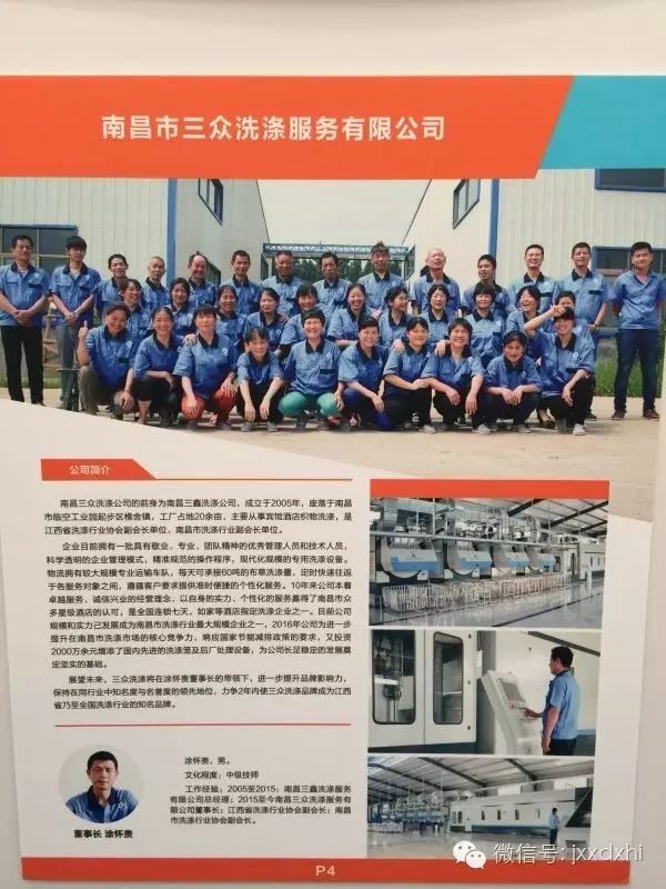 南昌市三众洗涤服务有限公司的前身为南昌三鑫洗涤公司,成立于2005年,坐落于南昌市临空工业园起步区樵舍镇,工厂占地20余亩。主要从事宾馆酒店织物洗涤,是江西省洗涤行业协会副会长单位,南昌市洗涤行业副会长单位。