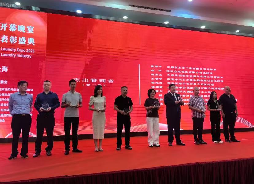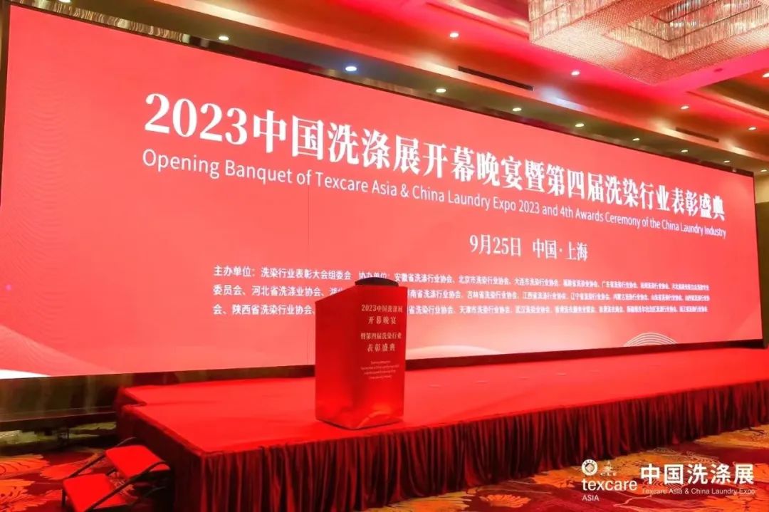 2023中国洗涤展开幕晚宴暨第四届洗染行业表彰盛典9月底在上海隆重举行。活动现场,展会主办方及国内外行业商协会领导、洗染企业高管等300多位行业精英齐聚一堂,共同见证榜样的荣光,感悟标杆的力量。