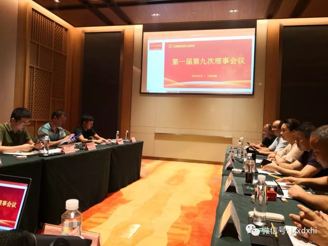 江西省洗涤行业协会第一届第九次理事会议于6月27日在江西省宜春市召开,江西省洗涤行业协会会长付伟俊;副会长涂怀贵、万焘、方强、邱华、万小宝;秘书长黄东旭;及协会各理事单位出席了此次会议。会议由协会会长付伟俊主持。