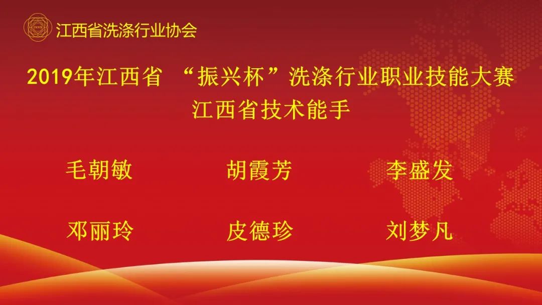 让我们再一次以热烈的掌声对全体获奖选手们表示祝贺!你们是我们江西省洗涤行业的骄傲!希望你们再接再厉,不骄不躁,百尺竿头,更进一步!