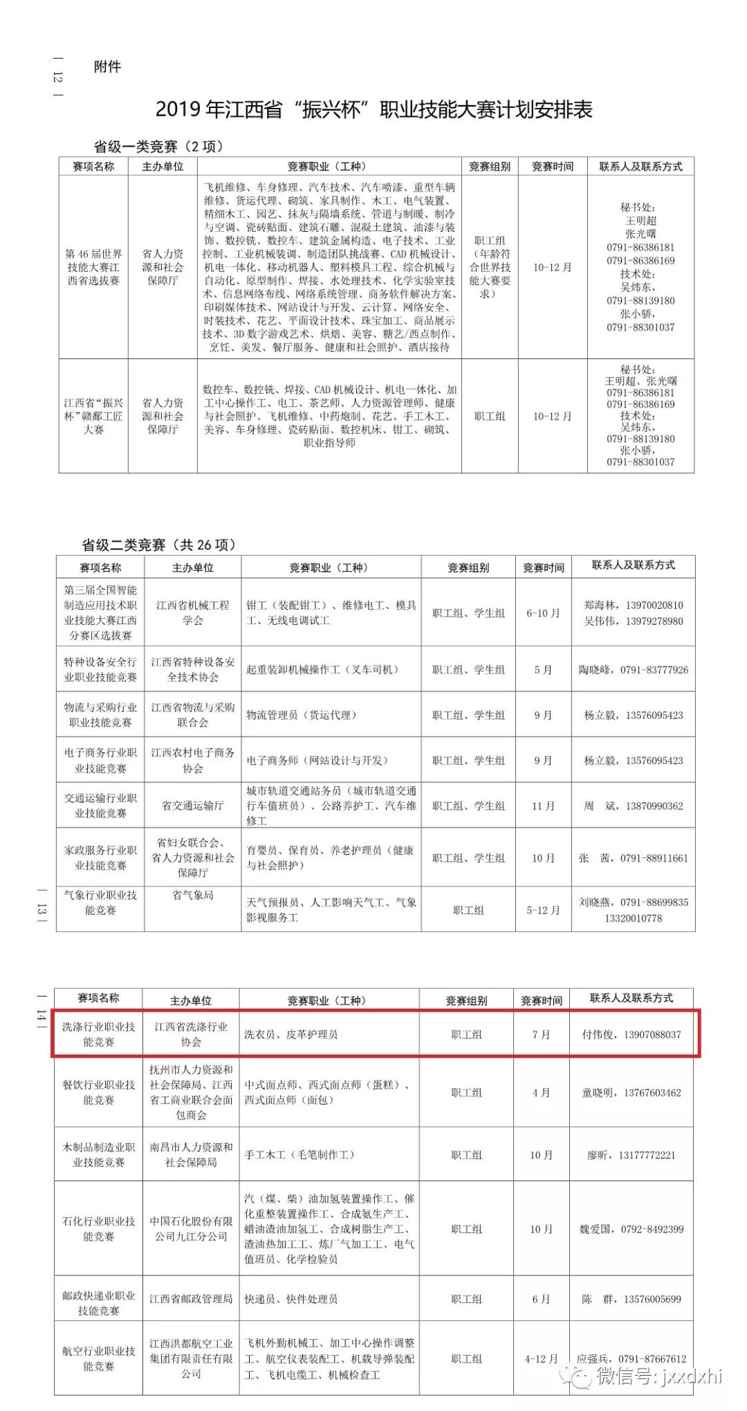 附件:2019年江西省“振兴杯”职业技能大赛计划安排表