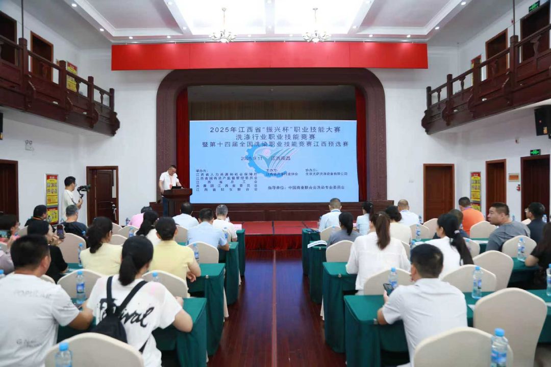 2025年江西省“振兴杯”职业技能大赛洗涤行业职业技能竞赛暨第十四届全国洗染职业技能竞赛江西预选赛于2025年9月11日在江西南昌滨江宾馆隆重举行,竞赛由江西省人力资源和社会保障厅、江西省国有资产监督管理委员会、江西省总工会、共青团江西省委员会、江西省妇女联合会主办,江西省洗涤行业协会承办,北京尤萨洗涤设备有限公司协办。本次竞赛是江西省洗染行业最权威的职业技能竞赛。历经多年的发展,已成为洗染人切磋学习技艺,彰显工匠精神,展示企业风采,提升行业整体水平的重要平台。