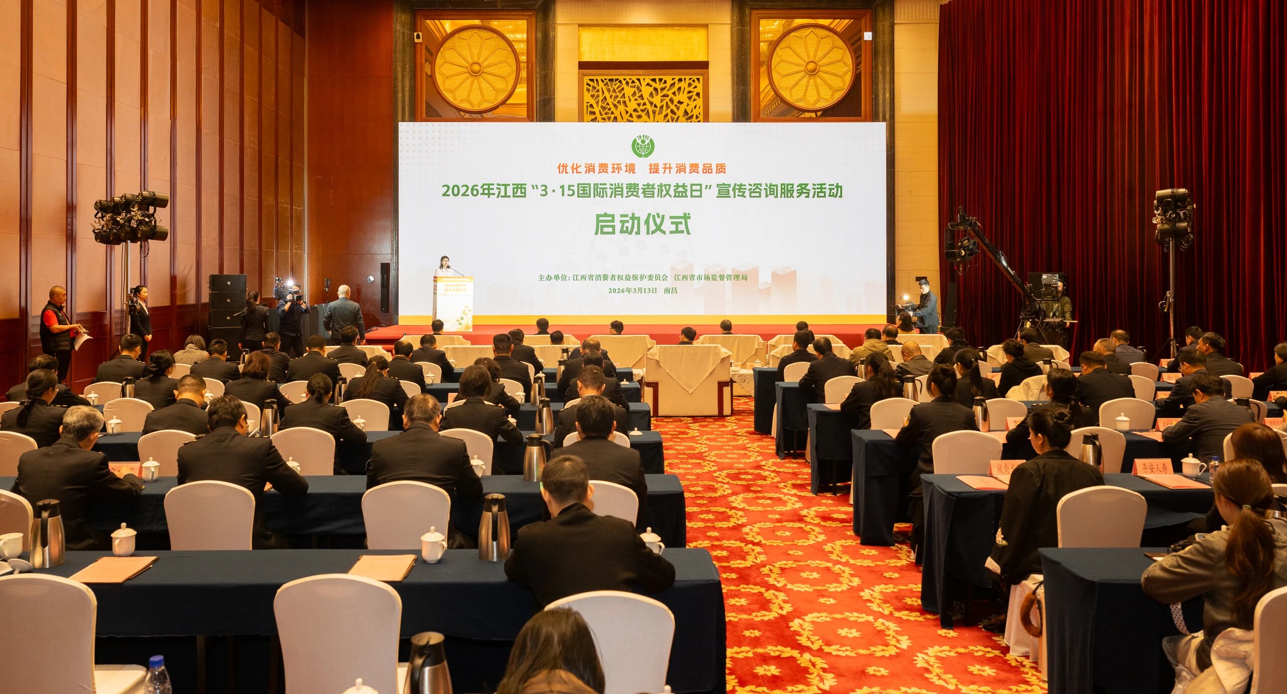 3月13日,以**“优化消费环境,提升消费品质”**为主题的2026年江西“3·15”国际消费者权益日宣传咨询服务活动在南昌隆重举行。省人大常委会副主任、省消保委主任朱斌,副省长史可等领导出席活动。