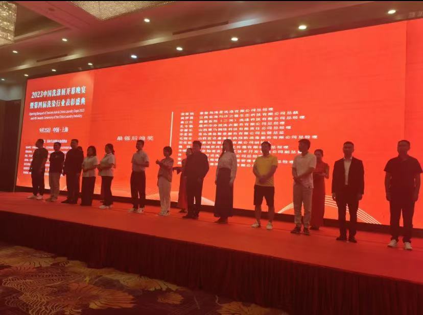 2023中国洗涤展开幕晚宴暨第四届洗染行业表彰盛典9月底在上海隆重举行。活动现场,展会主办方及国内外行业商协会领导、洗染企业高管等300多位行业精英齐聚一堂,共同见证榜样的荣光,感悟标杆的力量。