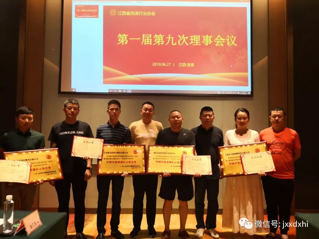 江西省洗涤行业协会第一届第九次理事会议于6月27日在江西省宜春市召开,江西省洗涤行业协会会长付伟俊;副会长涂怀贵、万焘、方强、邱华、万小宝;秘书长黄东旭;及协会各理事单位出席了此次会议。会议由协会会长付伟俊主持。