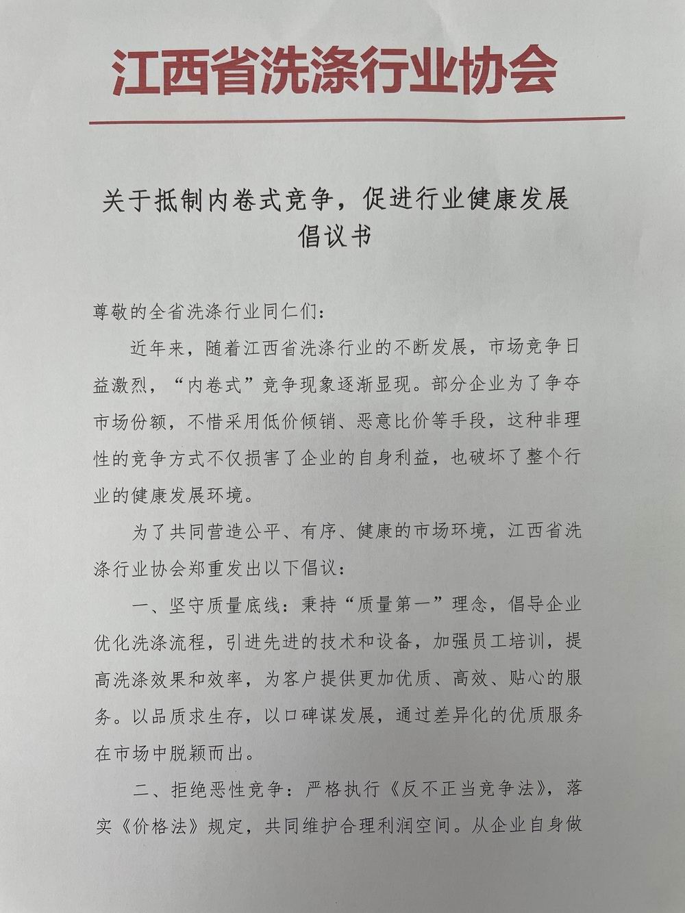 关于抵制内卷式竞争,促进行业健康发展倡议书