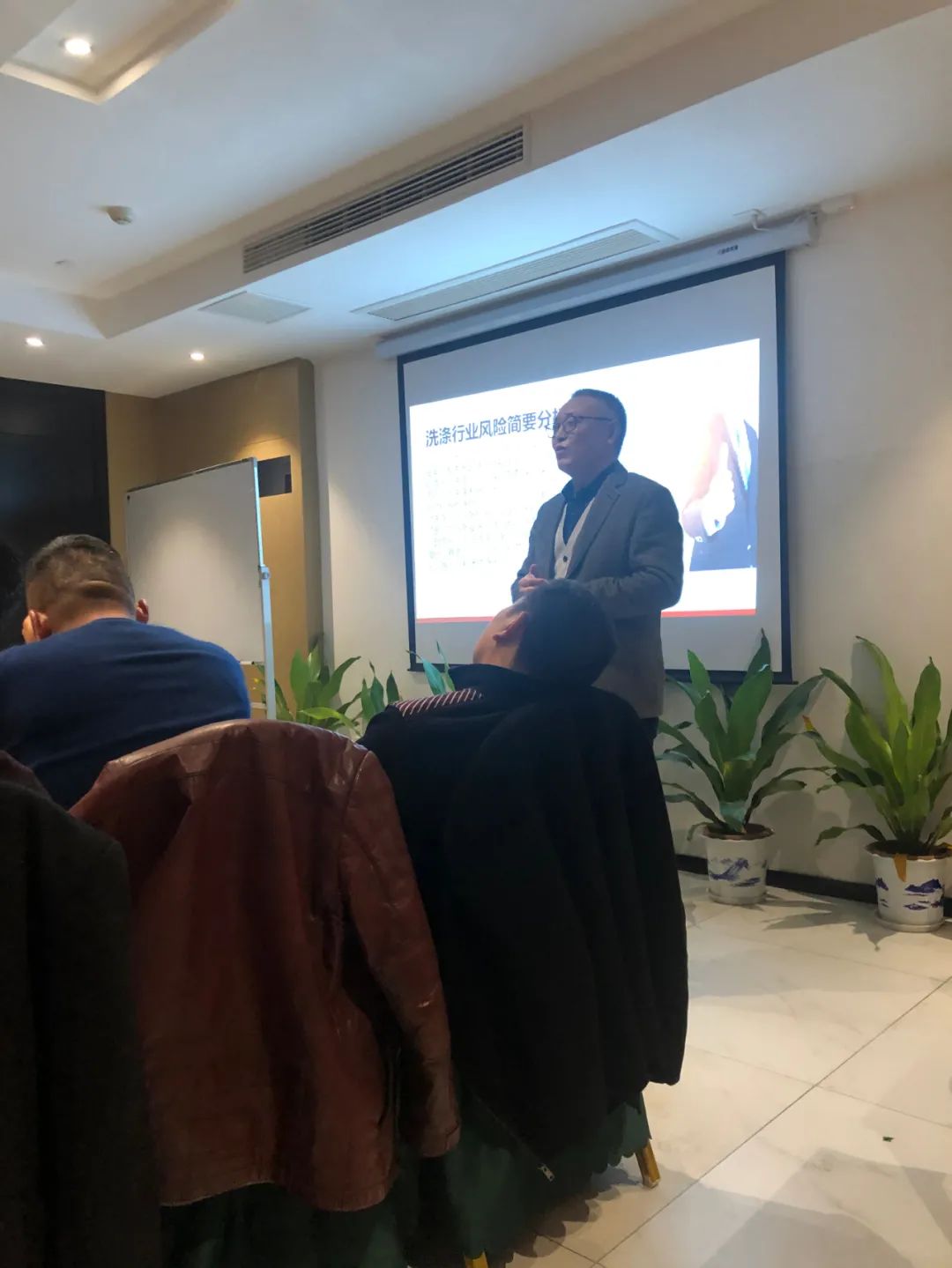 会后,由金诚国际保险经纪有限公司赣州分公司谢华生总经理给协会同仁们讲解企业经营性风险评估与保障。