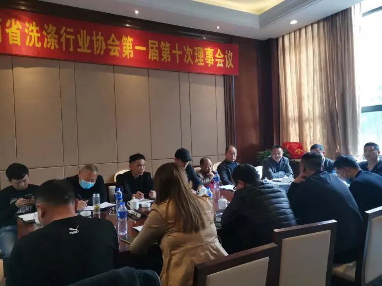 江西省洗涤行业协会第一届第十次理事会议及月会长会议于2020年4月7日在南昌顺利召开,会议由协会会长傅伟俊主持;副会长方强、万焘、涂怀贵、邱华、万小保;秘书长黄东旭;理事许昊、蔡军华、吴运汉、徐扬、涂宏伟、郭流浪、张平夫、张志平等参加了此次会议。