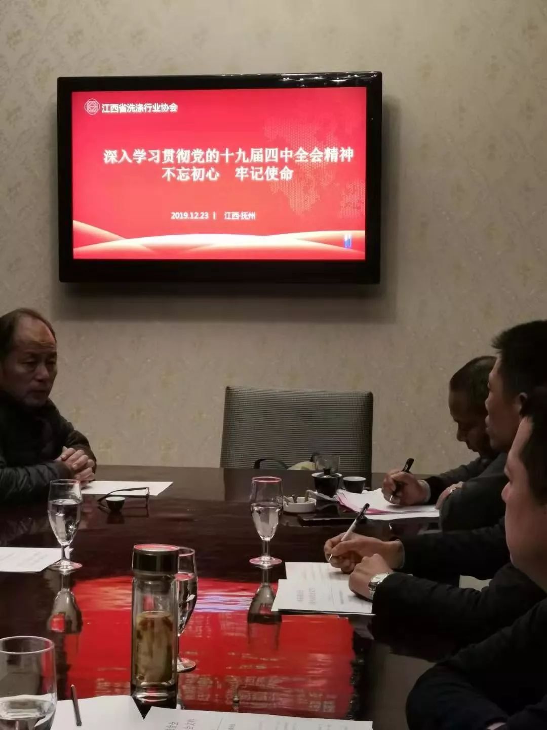 2019年12月23日,江西省洗涤行业协会2019年第七次会长会议于抚州顺利召开,会长及副会长单位企业代表参加了此次会议。为扎实推动党的十九届四中全会精神在我省洗涤行业协会落地,江西省洗涤行业协会党支部,也特此次月会长会议之际,组织部分党员及全体会长学习十九届四中全会精神。
