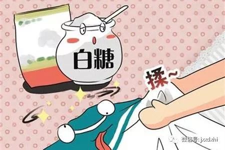 办法1:需要用到白糖。首先把沾上污渍的地方用水浸湿,然后再撒上一勺白糖,用手揉搓。我们可以看到一部分酱油迹已经沾到了白糖上,然后用水清洗,可除去渍。