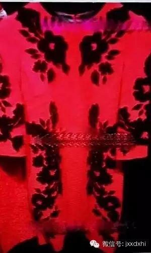 事故现象:衣物在经过四氯乙烯洗涤后,黑色印花产生脱落现象(如图3所示,原衣可借鉴图4)。