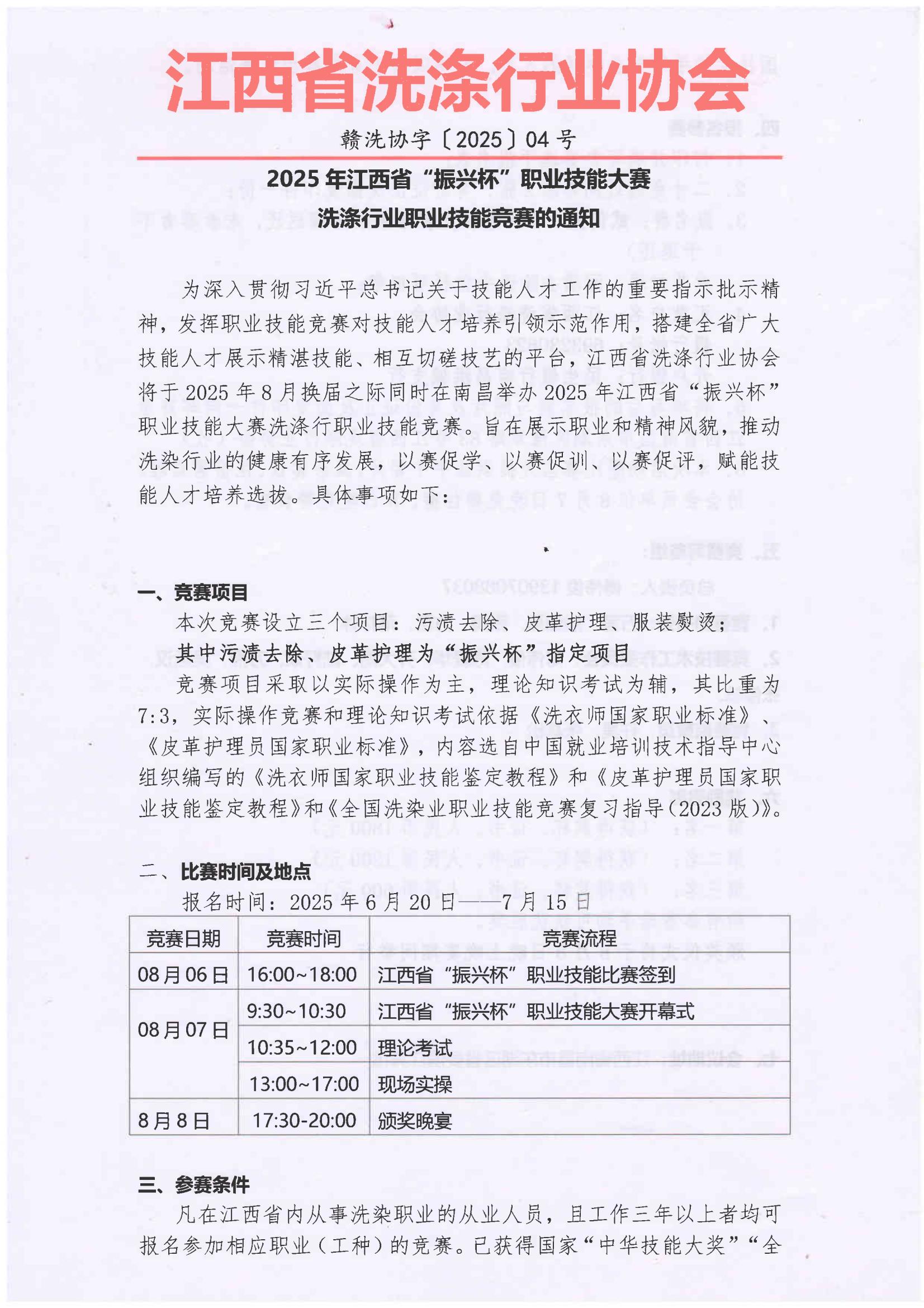 2025年江西省“振兴杯”职业技能大赛洗涤行业职业技能竞赛