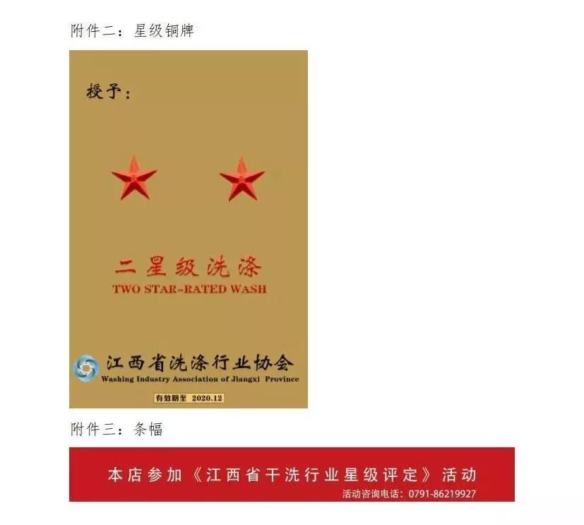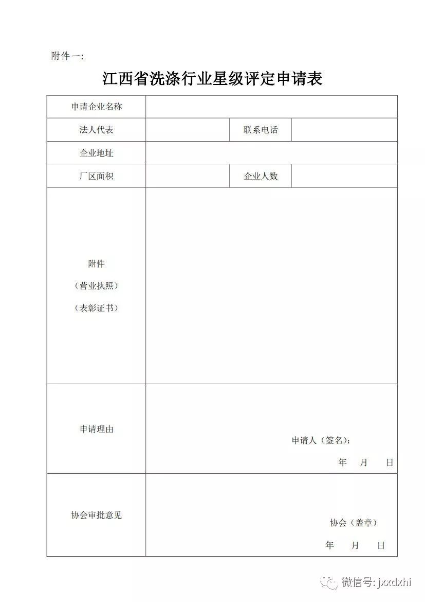 点击下方阅读原文,下载江西省洗涤行业星级评定申请表(图-附件一)